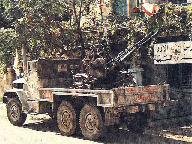 An M34 armed with a ZU-23-2 AA gun belonging to the Guardians of the Cedars during the early stages of the war on Lebanon.